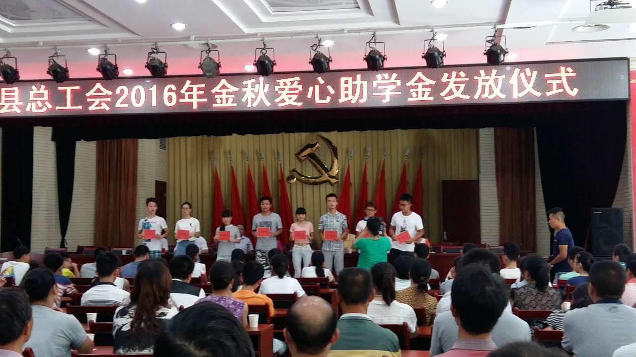 8月17日,在縣委一樓會務中心大廳舉行了勉縣總工會2016年金秋愛心助學金發放儀式。我公司28名職工子女受到救助。